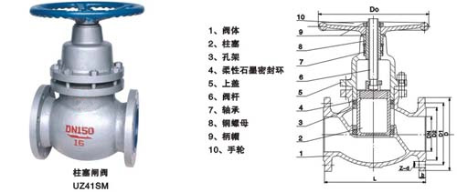 柱塞閘閥是由閥體、閥蓋、閥桿、柱塞、導(dǎo)向套、密封環(huán)、手輪等零件組成 (如圖)。當(dāng)手輪旋轉(zhuǎn)時(shí),通過(guò)閥桿帶動(dòng)柱塞在導(dǎo)向套中上、下往復(fù)運(yùn)動(dòng),使柱塞端部斜錐面與閥座面完成閥門(mén)的開(kāi)啟與關(guān)閉功能。