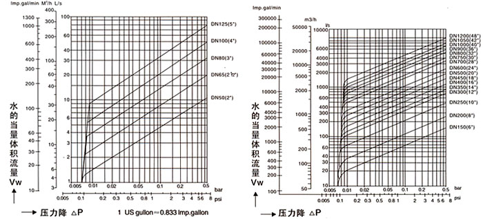 小,流體阻力系數(shù)為2.6~0.7,隨著閥門口徑的增大,流體組力系數(shù)減小 |
